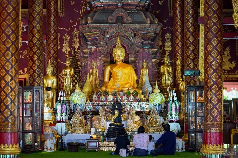 特に注意してほしいのが、日本人観光客に人気の寺院ワット・パクナム。極彩色の天井画がインスタ映えするとSNSでよく見かけますが、あの天井画がある仏塔の内部は神聖な礼拝の場です。