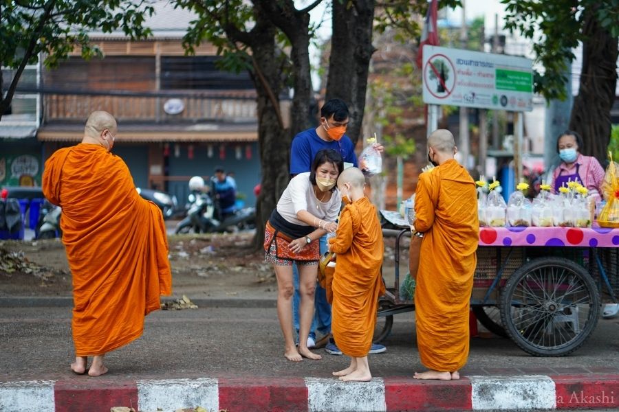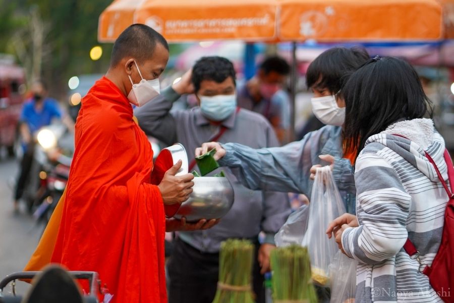 ただし托鉢は神聖な儀式です。撮影するなら節度を保って、托鉢の邪魔をしたり、僧侶の目の前で撮影したりするのはやめましょう。