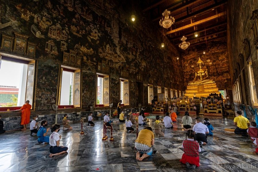 僕自身も、15年暮らすうちにいつの間にかタンブンの習慣がつき、月に一度はお寺に行くようになっています。忙しかったり悩んでいたりするとき、お堂で軽く瞑想するだけで頭がすっきりするんです。